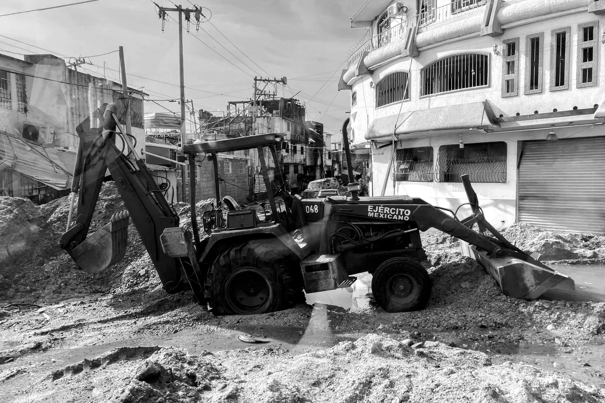 Long before arriving in the town, traffic queues began to form, with people of all generations passing by, heading to the far corners to get food and drink. At that moment, food was worth more than money, which is now worthless in Acapulco. Fortunately, none of those whom all our informants had warned us about appeared. We whizzed through the devastated city with the other ambulances.