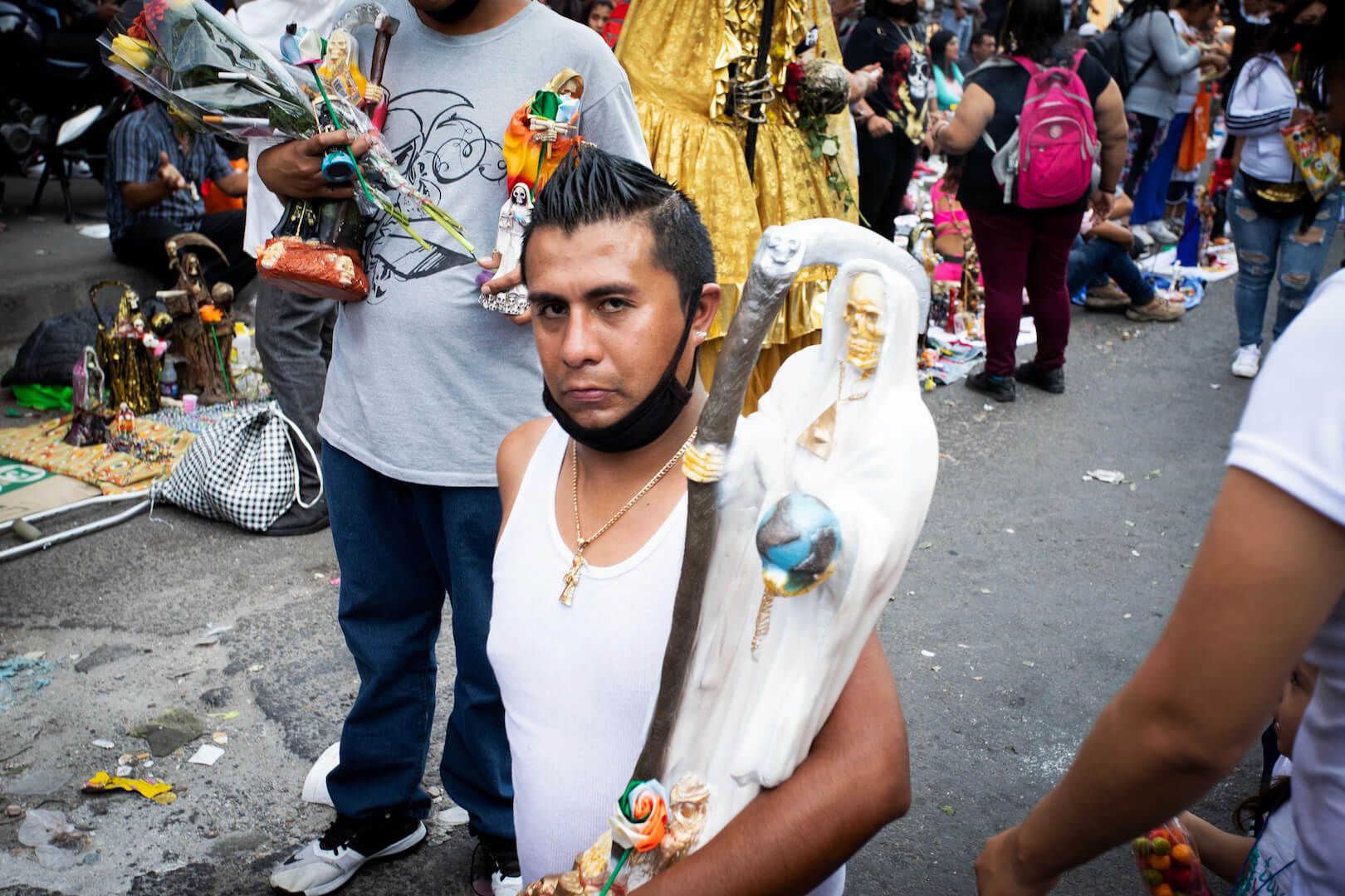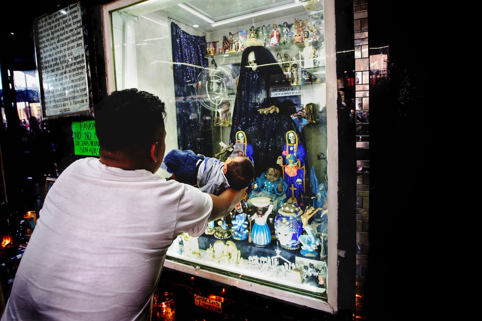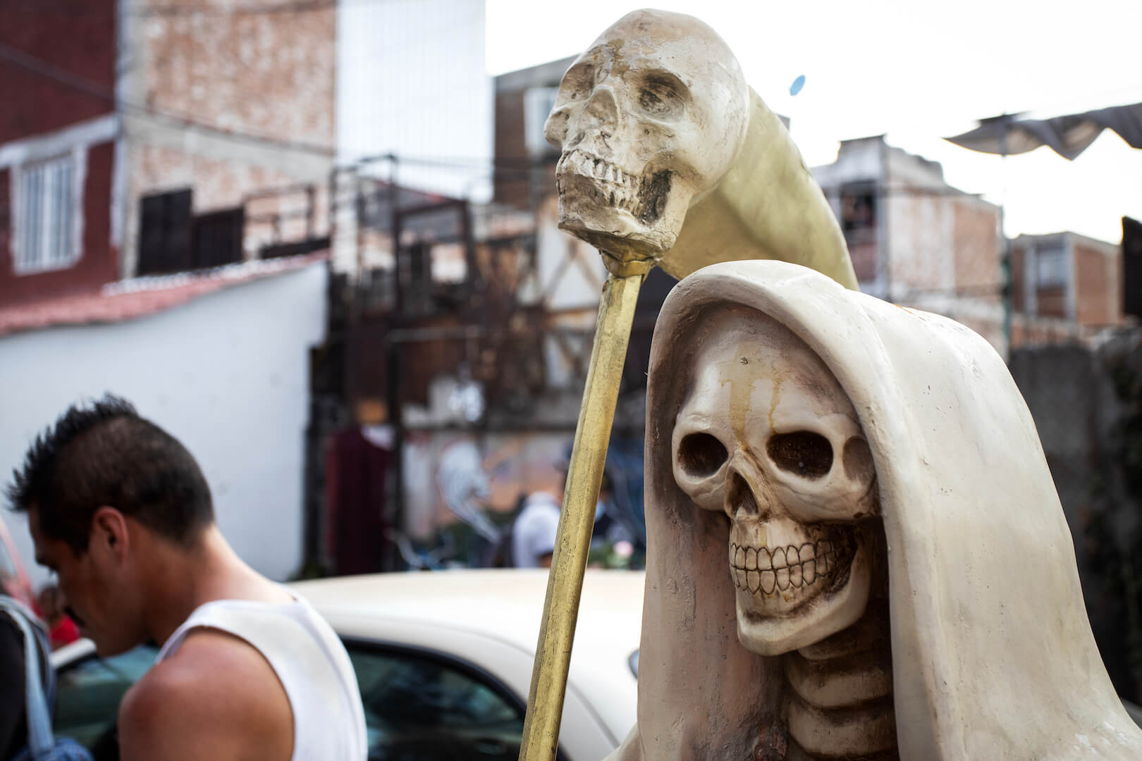 And so when E., standing in the square and chatting with his acquaintances, told me that I would be taken to the altar of Santa Muerte, the patron saint of narcotraffickers and damned of all kinds, whom I had come to report on, by the head of this plaza himself, I was unnerved and all the possible and impossible consequences of a single NO flashed through my mind.